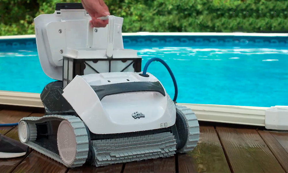 The Dolphin E10 simplifies pool care with its top-access filter basket. Quick and easy cleaning ensures more enjoyment from your pool.